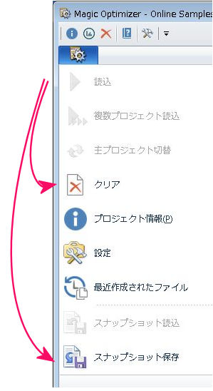 プロジェクト読込み後の選択肢1プロジェクトの解析終了後、他のプロジェクトを読込む前に、一旦読込みプロジェクトをクリアします.