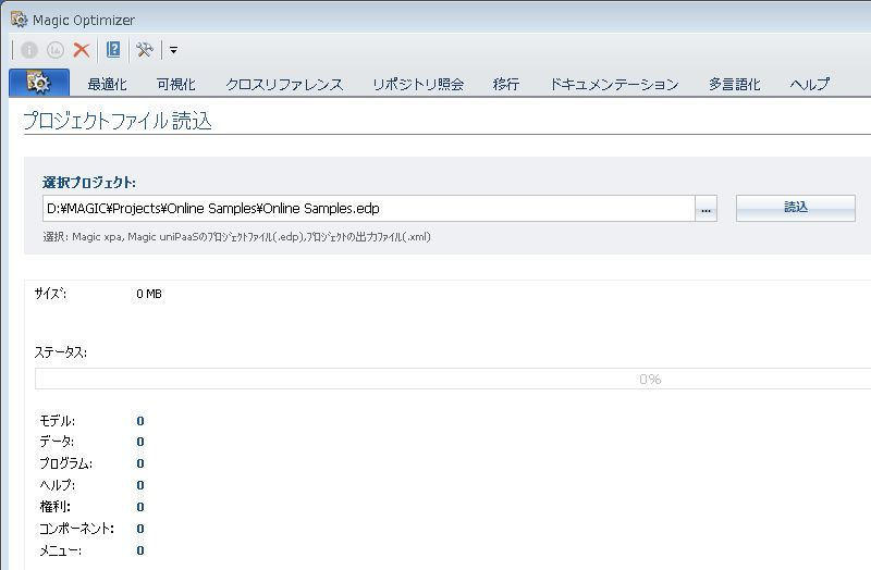 プロジェクトまたはエクスポートファイルを選択し、[読込]ボタンをクリックすると、読込処理が開始されます。