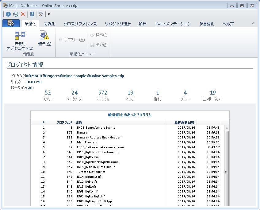 プロジェクトが読み込まれると、[プロジェクト情報]画面に読み込まれたロジェクトについての情報が表示されます。